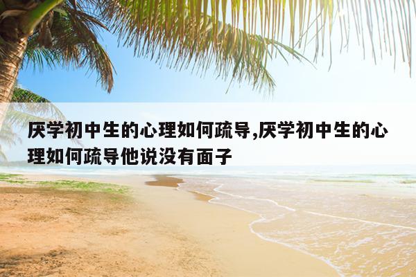3、厌学的初中生心理疏导方法如下:改善环境:一个好的环境需要社会、家庭、学校之间相互配合,社会的鼓励、家长关心、教师重视、同学和善都有利于营造一个快乐学习的氛围,能够有效地帮助消除厌学学生被抛弃被歧视的感觉。