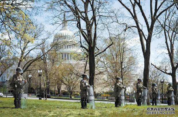4月2日,美国国民警卫队队员在华盛顿国会附近警戒。 新华社记者 刘杰摄