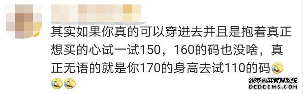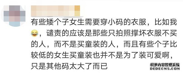 “关于建议成人尽量不要试穿160号码以下童装的提示我们一直都有,我们不会挂指示牌,但是我们会友善地提醒,大部分人也会听从建议。而且那是给孩子设计的服装,肯定不会有设计成BM风那样的成人服装舒适。”