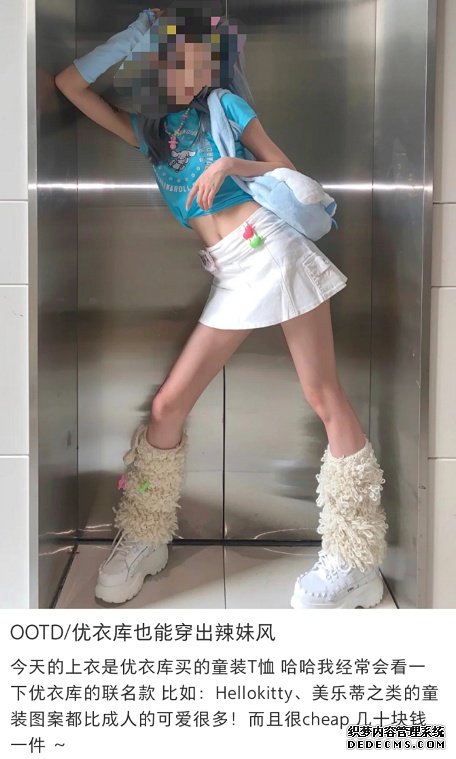 在网络平台上可以看到,从去年开始就有人在晒自己穿着童装的照片。部分是在试衣间里拍摄的照片,部分博主声称自己买了之后穿的。