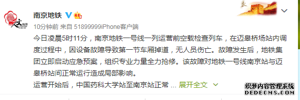 1丨官方通报来了!南京地铁1号线空载检查列车掉道,无人员伤亡