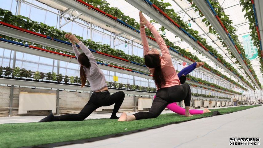 位于海淀区温泉镇的中关村科普农庄的“5G云端草莓园”,外观就是一个普通的温室大棚,走进去却发现别有洞天,1200平方米的大空间里,自动喷灌车根据程序设定巡航施肥,水肥控制、保温补光、绿色防控等全部交给5G云端管理。19个悬挂在空中的草莓栽培廊架,可自动升降,最高可以离地2.5米。海淀区农业科学研究所所长郑禾介绍,把草莓廊架悬挂在空中,草莓廊架下的空间可以开展各类文化、艺术活动。“比如,铺上垫子就能练瑜伽,园内一角还设置了休闲区,市民可以坐在木质圆桌边,慢慢享用一杯咖啡。”