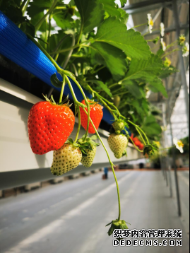 草莓园应用的“5G云端草莓栽培系统”是北京市海淀区农业科学研究所技术人员自主研发的国内首个5G通讯草莓无土栽培系统。该系统采用了先进的“5G”通信、大数据云计算环境控制、智能机器人、水肥一体化、LED植物补光、UVB杀菌等多种技术和设备。尽管投入的人工少了,但是云端草莓园的产量可一点都不低,亩产可达3000公斤,相较普通草莓生产能够增产一倍。