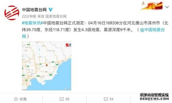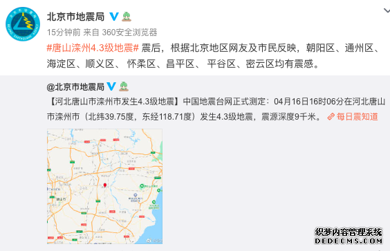 唐山发生4.3级地震 京津有震感 各地通报地震相关情况~