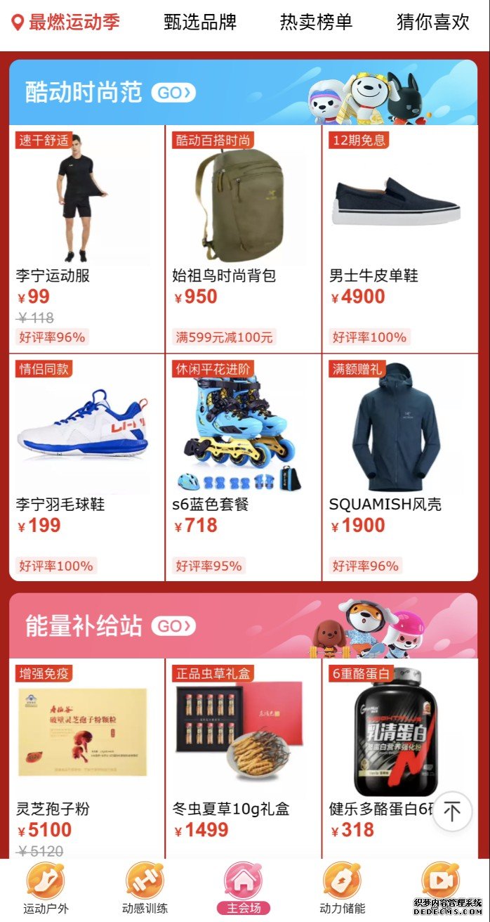 此次京东全民运动会以“为热爱敢上场”为主题,鼓励消费者将运动付诸实践,用自己喜欢的运动方式去发现生活的乐趣。在活动设置上,京东站内落地了全民运动会主会场,其中既有趣味十足的动感训练营,也有潮流感爆棚的运动装备,还有运动健身匹配的能量补给以及健康监测模块,确保全民运动的科学与健康。