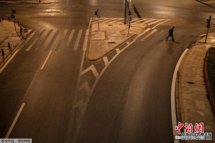 当地时间11月15日,希腊雅典,一名行人穿过空旷的Messogion大街。