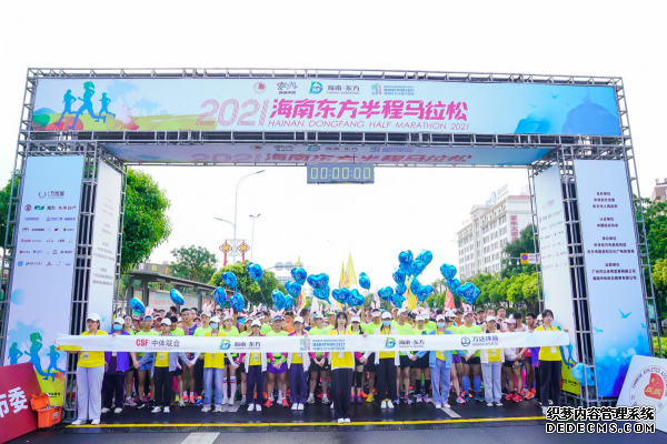 清晨6点,赛道起点便迎来精神奕奕的参赛选手,有序存衣、积极热身、拍照留念,选手们在动感的音乐声中做着出发前的准备。7点10分,2021海南东方半程马拉松开幕仪式在市民休闲广场举行,中共东方市委书记田丽霞,海南省人社厅党组成员、省人力资源开发局局长赵微,万达文化集团副总裁兼万达体育中国公司总裁高益民,东方市人大常委会主任钟海涛,中共东方市委副书记、东方市人民政府市长张长丰,海南省旅文厅群众体育处处长谢秋雄,东方市政协主席潘乙宁,万达投资集团海南区域公司总经理袁洋,海南中体联合赛事有限公司总经理徐锋涛参加了开幕仪式。庄严肃穆的奏国歌仪式后,比赛准时鸣枪。