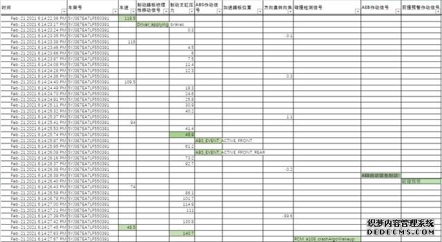 在车辆发生事故前的30分钟内,驾驶员正常驾驶车辆,有超过40次踩下制动踏板的记录,同时车辆有多次每小时超过100千米,和多次刹停的情况发生。