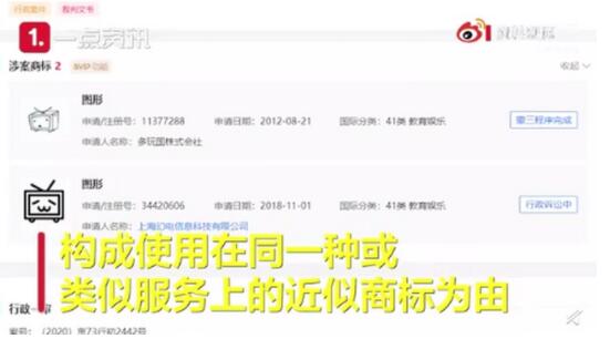 近日,上海幻电信息科技有限公司(B站关联公司)与国家知识产权局二审行政判决书公布。企查查APP显示,经一审法院查明,诉争商标为申请号34420606的小电视相关商标,申请人为幻电公司。国家知识产权局以诉争商标在复审服务上与引证商标(注册号11377288的另一小电视相关商标)构成使用在同一种或类似服务上的近似商标为由,决定驳回诉争商标在复审服务上的注册申请等。