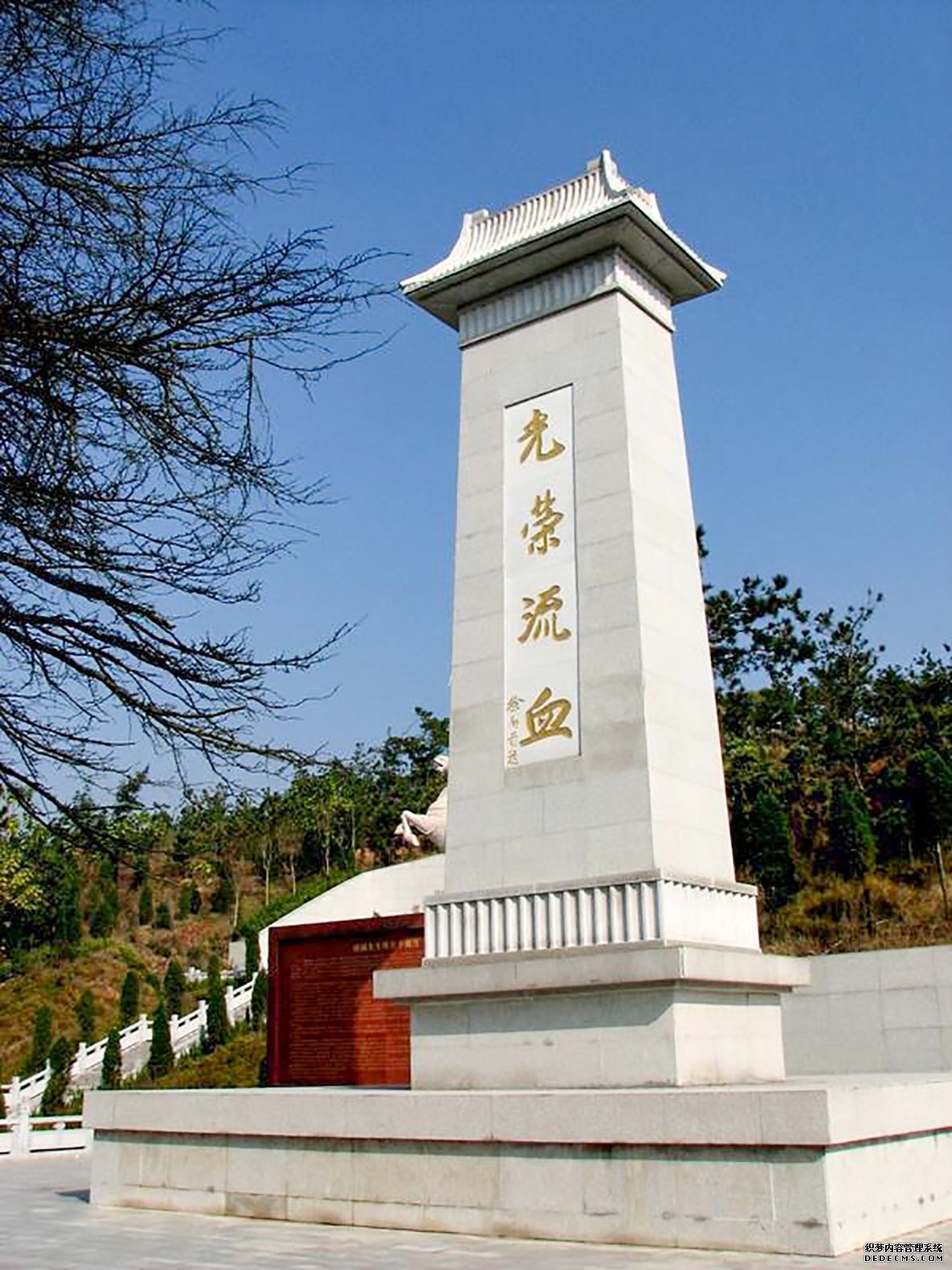 一匹白马前蹄腾空纵身而起,马背上的将领神情坚定,凝视前方。这座高13.5米的骑马花岗石雕像,虽历经多年风吹雨打,但仍不失沙场点兵的豪迈气势,矗立在大悟县新城镇严河村的一处纪念馆内。