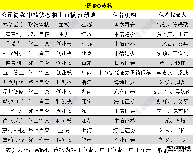 黄榜:10家终止审查、2家取消审核、1家终止注册