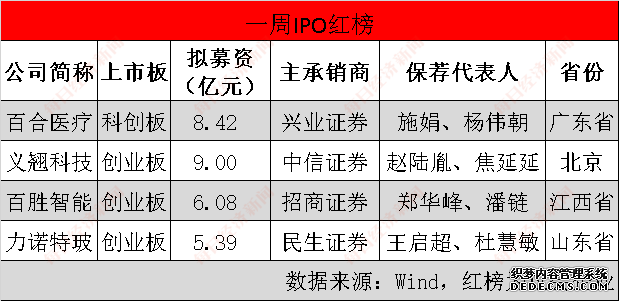 上周,注册制下的科创板和创业板,共有百合医疗、义翘科技、百胜智能和力诺特玻4家公司过会,其中百合医疗为二次上会。