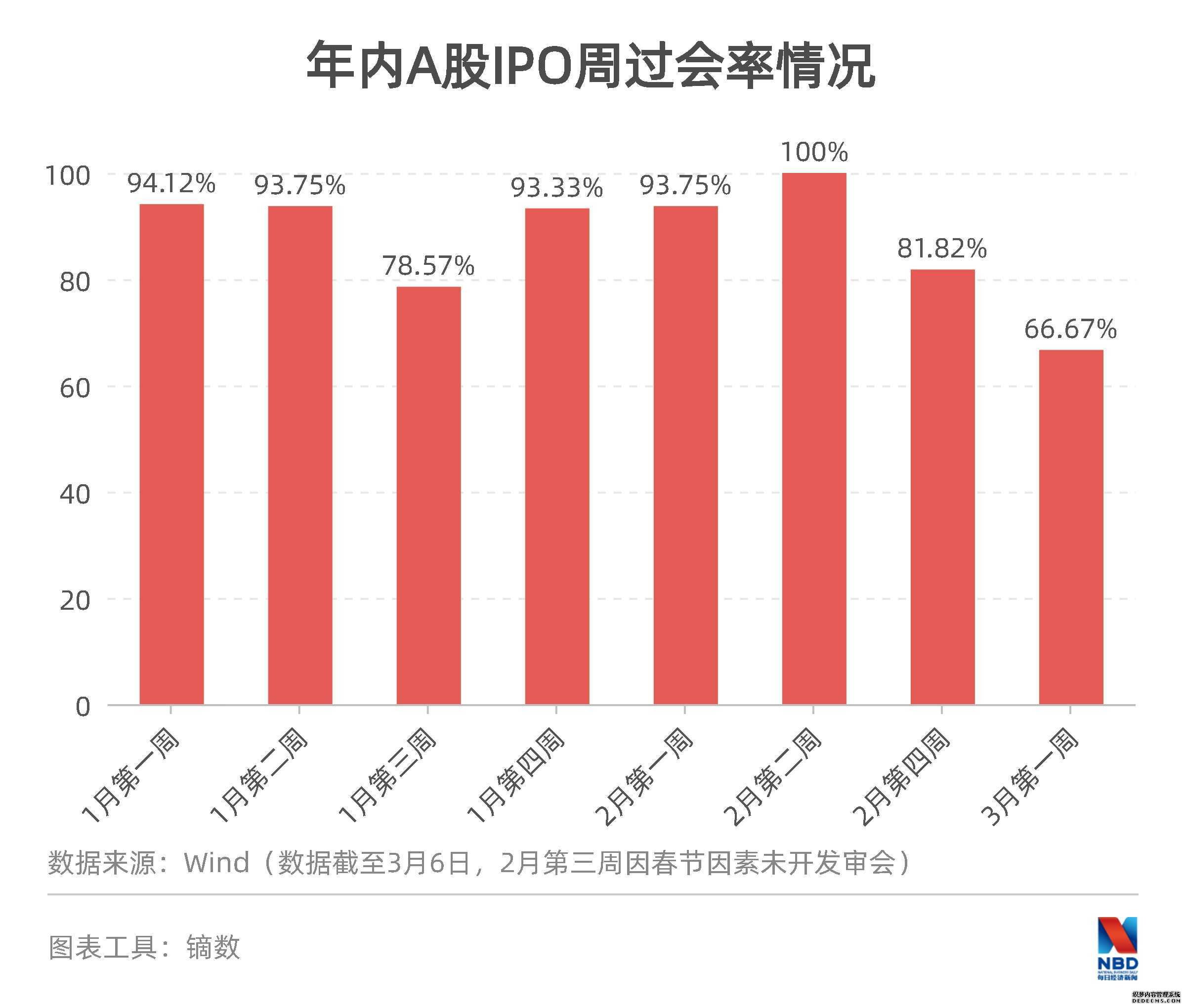于此同时,Wind数据显示,3月第一周的周过会率为66.67%,为年内最低,且为连续第二周下降。