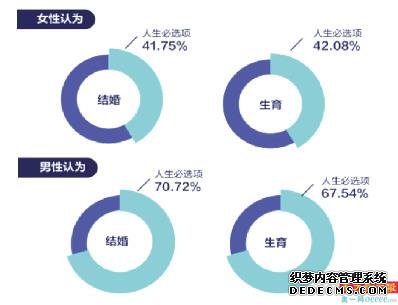 调研显示,认为结婚和生育是人生必选项的女性均远低于男性,分别占比41.75%和42.08%,整体不足一半。而男性对此却非常热衷,认为结婚和生育是人生必选项的占比分别为70.72%和67.54%,整体接近七成。