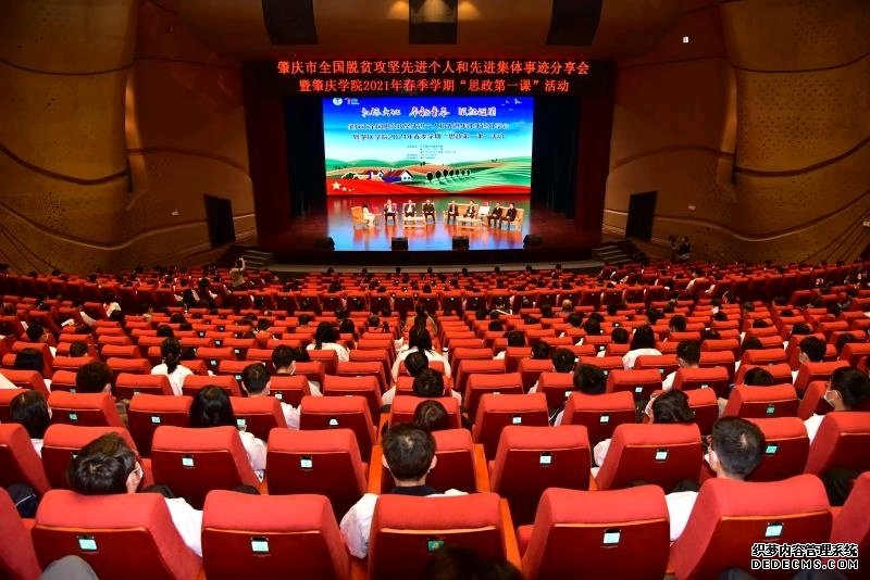 3月8日上午,由中共肇庆市委宣传部、肇庆市扶贫开发领导小组办公室和肇庆学院联合主办的肇庆市全国脱贫攻坚先进个人先进集体事迹分享会暨肇庆学院2021年春季学期“思政第一课”活动在肇庆学院艺术中心大剧场举行。肇庆学院近400名师生代表现场聆听分享。