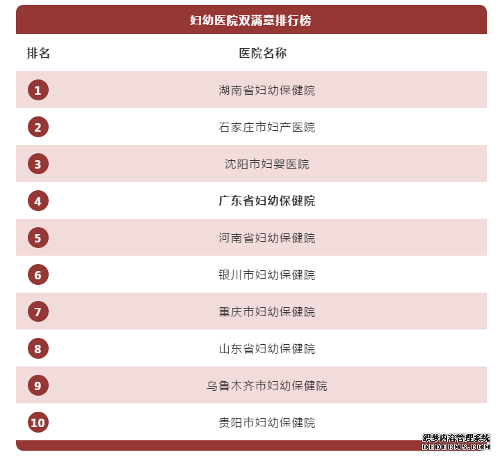 •广东省妇幼保健院位列“妇幼医院双满意排行榜”第4名