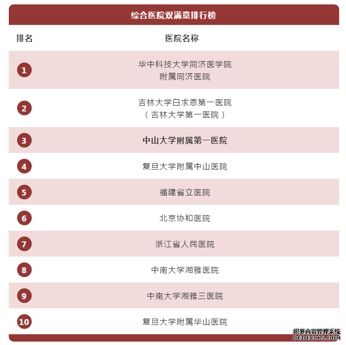 •中山大学附属第一医院位列“综合医院双满意排行榜”第3名