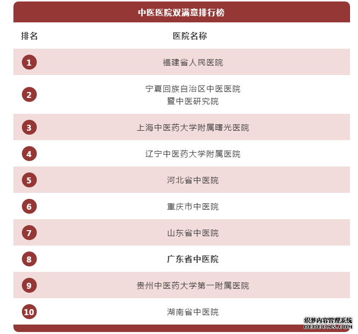 •广东省中医院位列“中医医院双满意排行榜”第8名