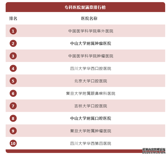 •中山大学附属口腔医院位列“专科医院双满意排行榜”第8名