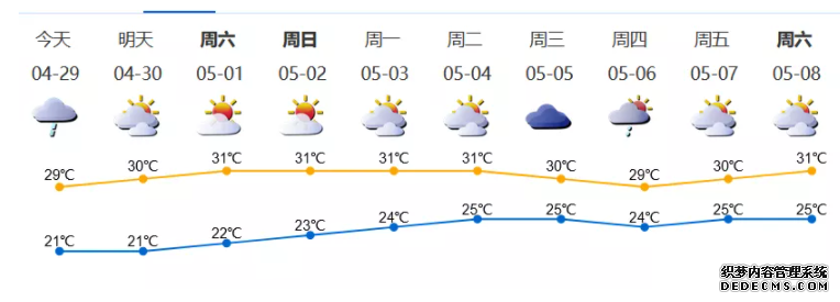 我市阵雨转多云;气温21-29℃;东北风3-4级,沿海、高地和海区阵风6级;相对湿度65%-95%。