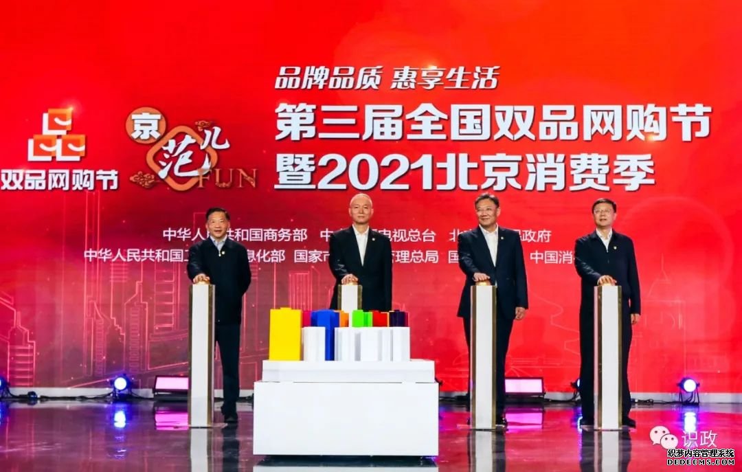 4月28日晚,第三届全国双品网购节暨2021北京消费季启动。市委书记蔡奇,商务部部长王文涛,中央宣传部副部长、中央广播电视总台台长慎海雄,市委副书记、市长陈吉宁出席启动活动。