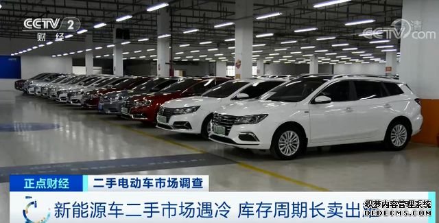 在浙江杭州最大的二手车交易市场,记者注意到,一些新能源二手车被摆放在显眼的位置,车上摆放着醒目招牌,即使这样也鲜有人问津,车身已落满灰尘。