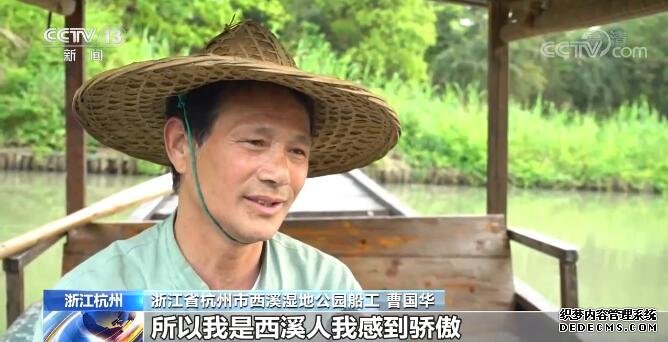 浙江省杭州市西溪湿地公园船工曹国华:现在湿地里的水已经回到我们小时候那样的水了,清澈见底的。国家一级保护动物都来了,接待游客时听到游客说得最多的就是,西溪真美呀!所以,我是西溪人,我感到骄傲。