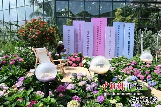记者在现场看到,此次花展设置了六大主题景组:她•双手上的思绪、撞进绣球里的梦、爸爸去哪儿•草原之星、依恋•妈妈的味道、深爱•滋养、流萤•夏夜,融合了华南植物园园艺师和首届“封怀杯”园艺大赛参赛作品的设计理念和艺术创意;景点使用萱草、鲁冰花、康乃馨、郁金香、百合、红掌、雏菊、马蹄莲、兰花等代表母爱的“母亲花”为主题花,辅以华南植物园收集保育的珍奇植物和时尚花材以及体现主题的园林小品,营造出一个个温馨梦幻而适合亲子打卡的花园。