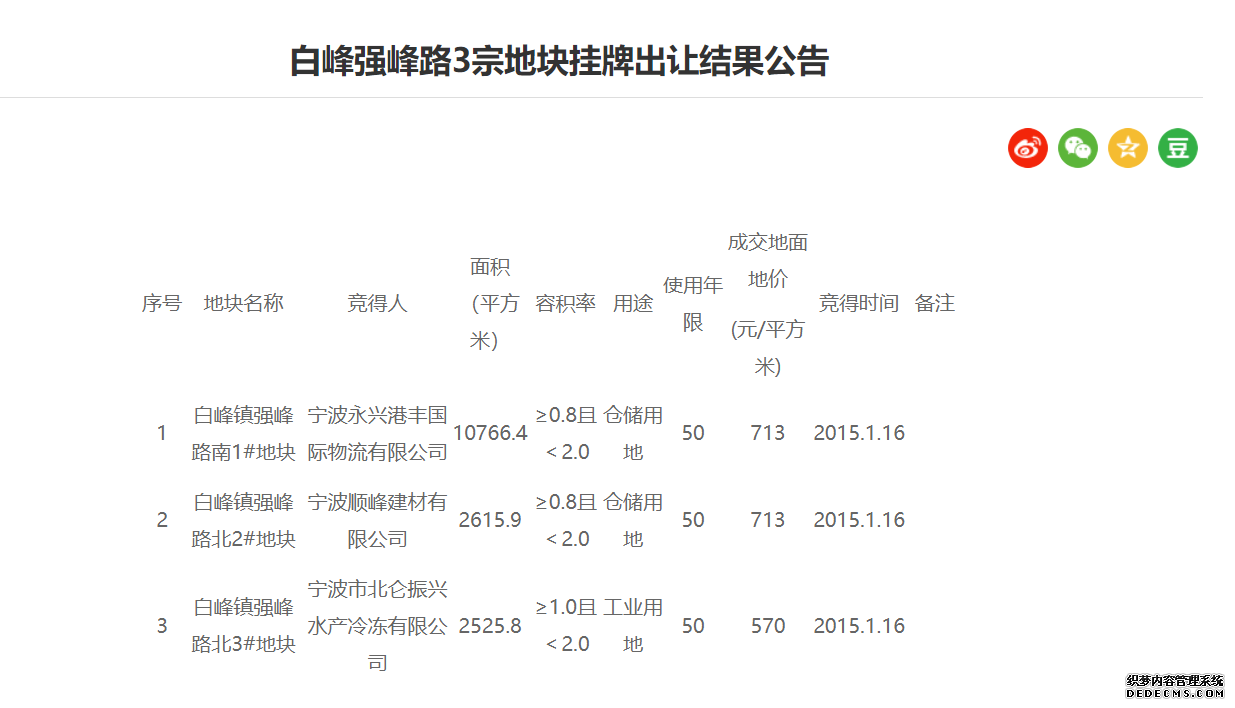 永港物流所在地强峰路的地价十分便宜。2015年,宁波顺丰建材有限公司(为永港物流子公司)挂牌获得的2615.9平方米土地使用权的成交价为713元/平方米。