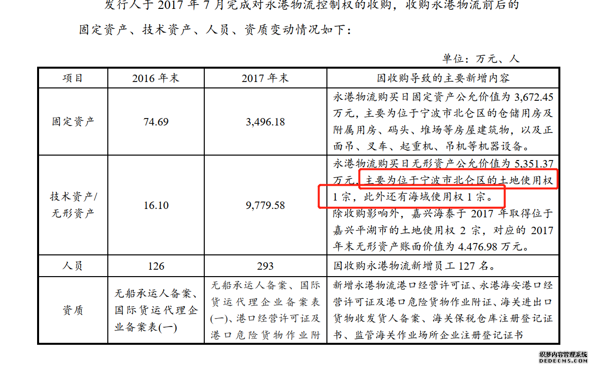 按照永泰运在第二轮问询回复中的说法,购买日时,公允价值为5351.37万元的无形资产主要为土地使用权1宗和海域使用权一宗。