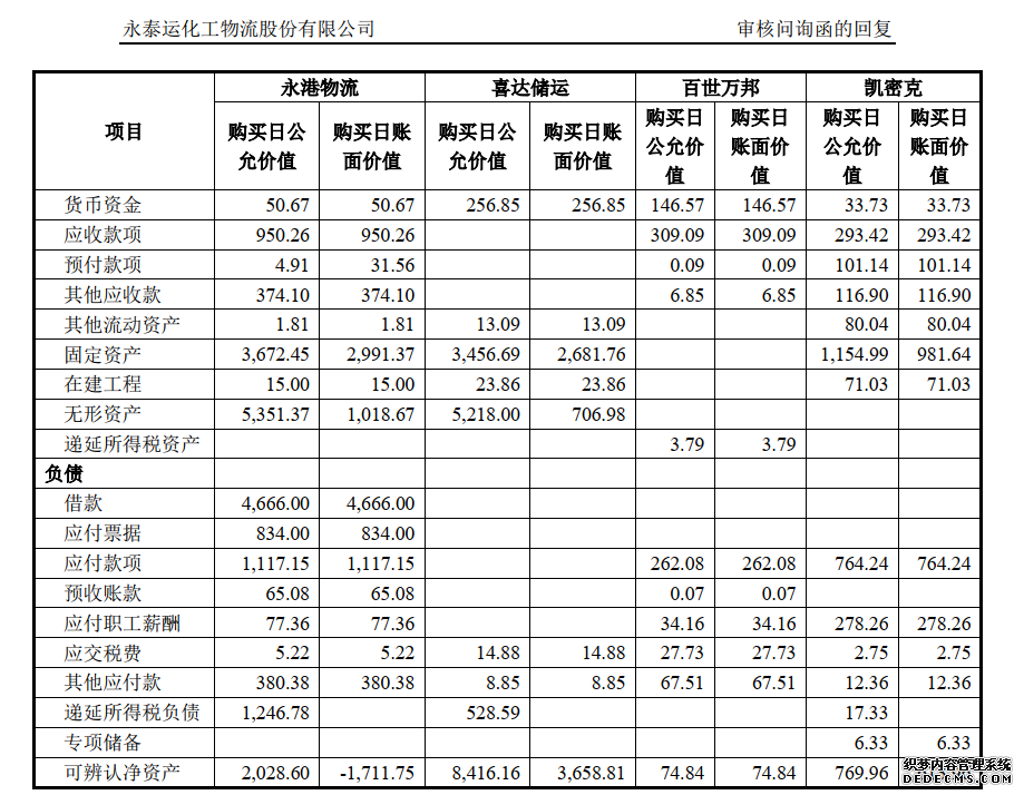 此外,永泰运回复交易所问询时,对于其并购资产的表述也疑似存在“虚高”的部分。