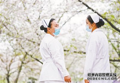 而在东湖樱花园,北京胸科医院的90后护士赵丽,拉着她去年在武汉认识的小姐妹、协和西院的罗兰护士,穿着护士服牵手漫步在樱花树下,说起在隔离病房里曾经的点滴,笑着笑着就哭了。