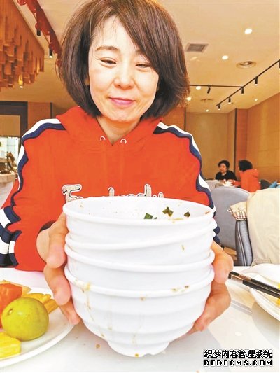 北京援鄂医疗队队员、北京中医医院蔡卫敏品尝武汉美食。
