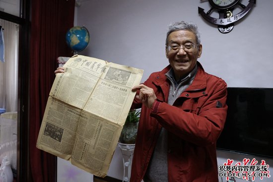 张扬拿着当年的老报纸。 中青报·中青网记者 朱娟娟/摄
