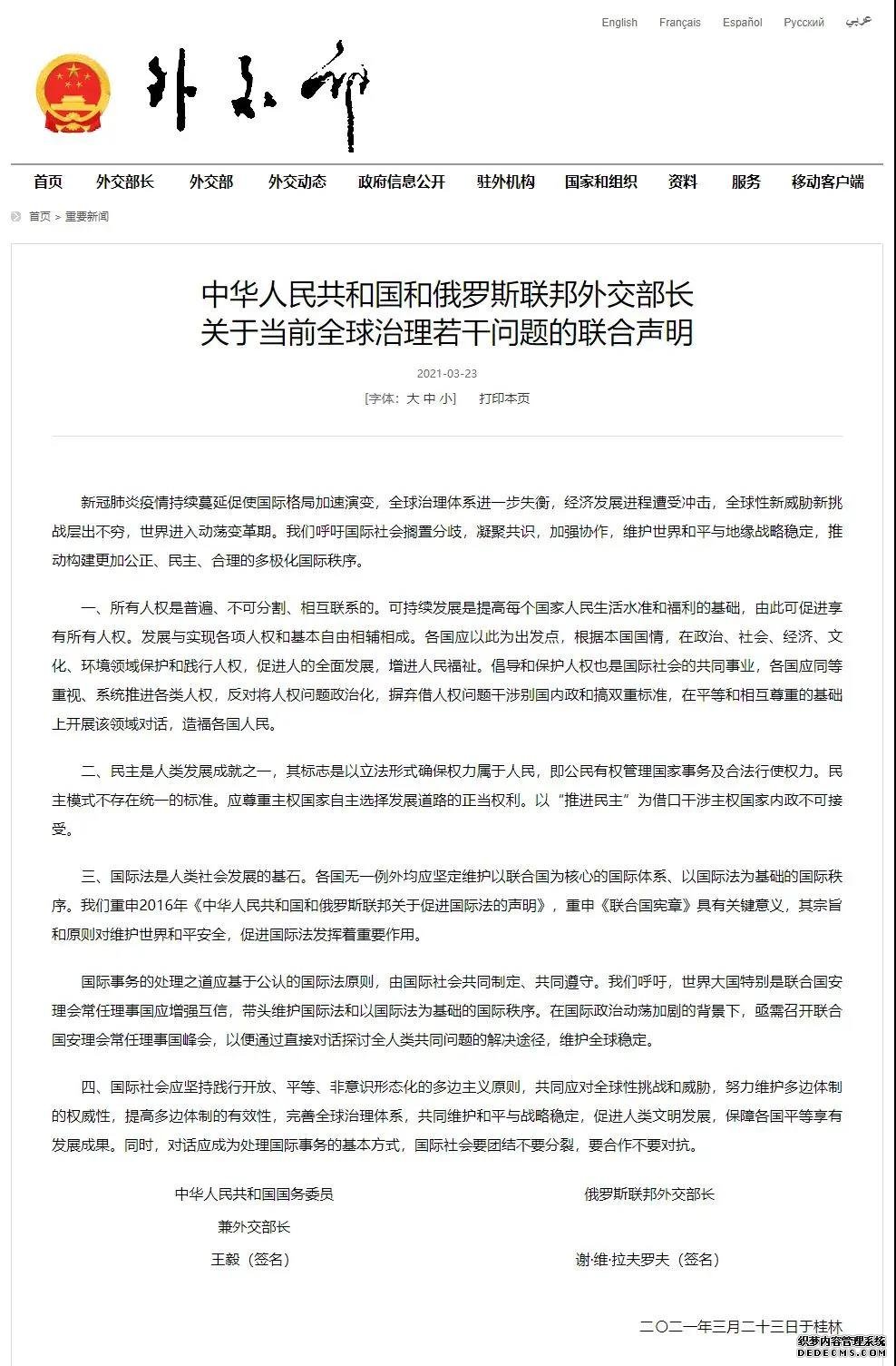 240706342021-03-24 07:57:40:290中俄外长联合声明国际,社会,发展,维护,人权331182时政快报时政快报