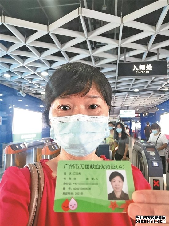 艾文秀用献血优待证(A)搭乘地铁。(来源:通讯员供图)