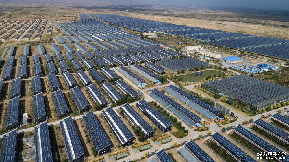 俯瞰宁夏银川市永宁县闽宁镇原隆村的光伏大棚(无人机照片,2019年9月3日摄)。新华社记者王鹏摄