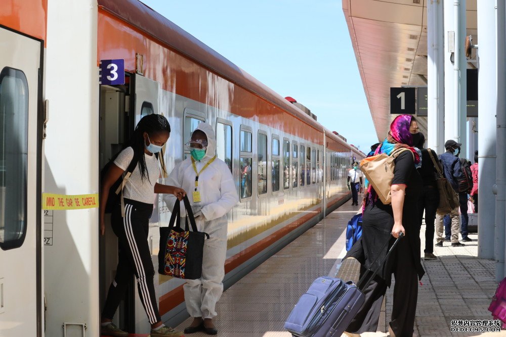 2020年7月13日,在位于肯尼亚蒙巴萨的蒙内铁路蒙巴萨站,乘客走出车厢。新华社发(冯东摄)