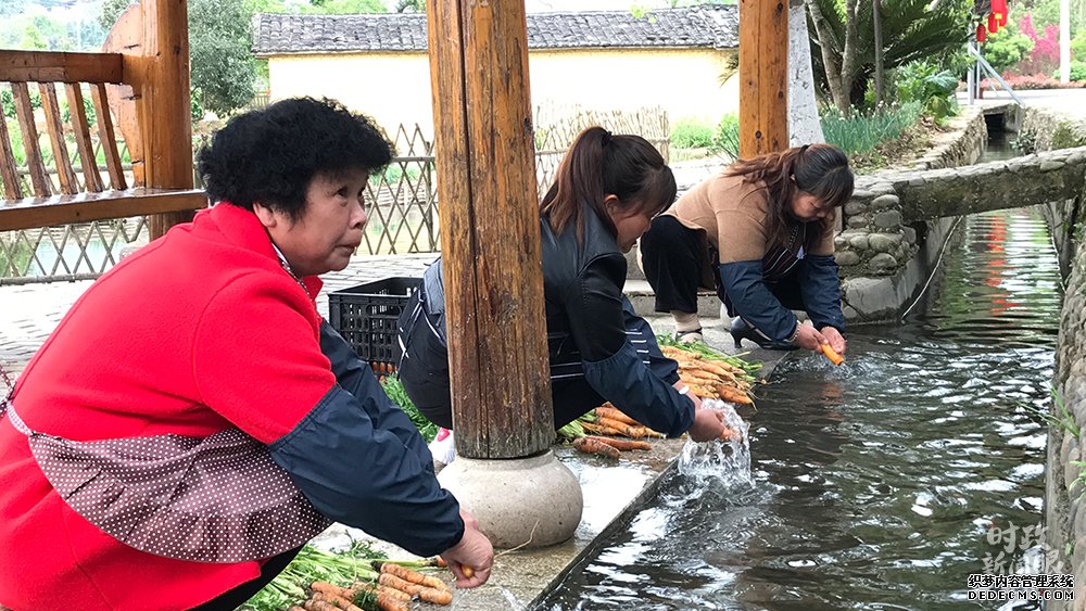 △俞邦村村民在村庄溪流中洗菜。(总台央视记者石伟明拍摄)
