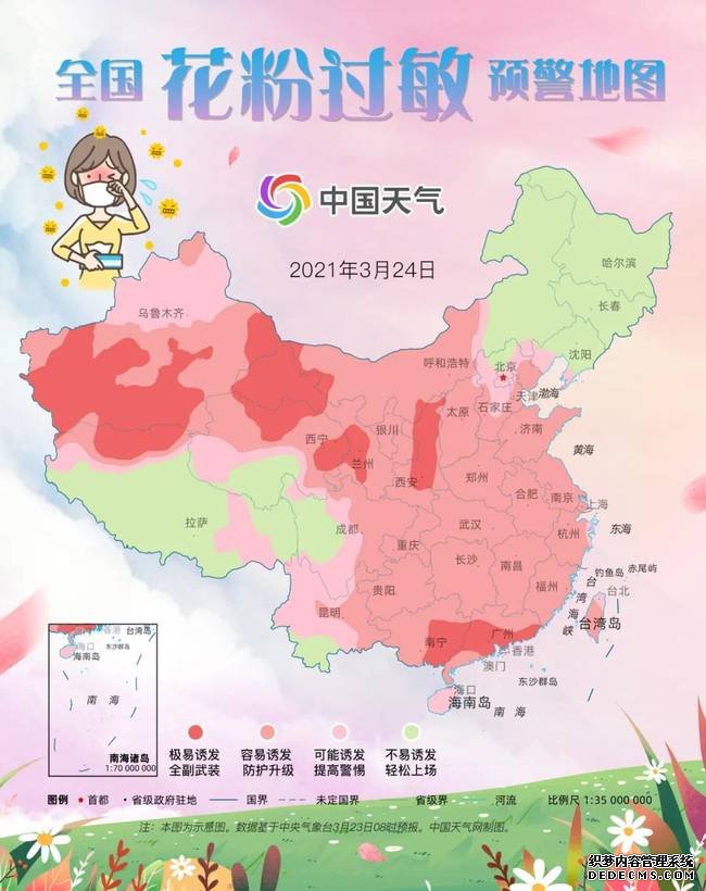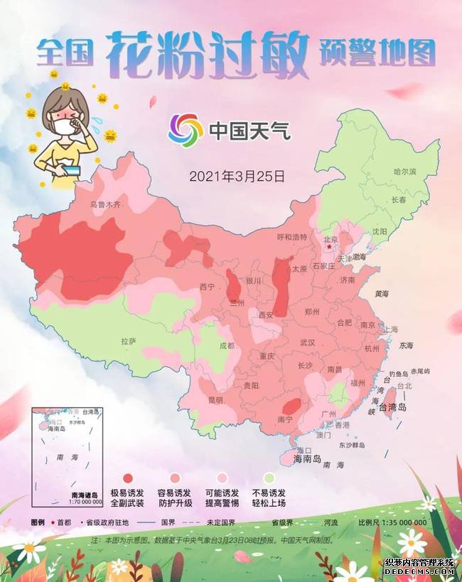 花粉过敏的人注意了!全国花粉过敏预警地图出炉!