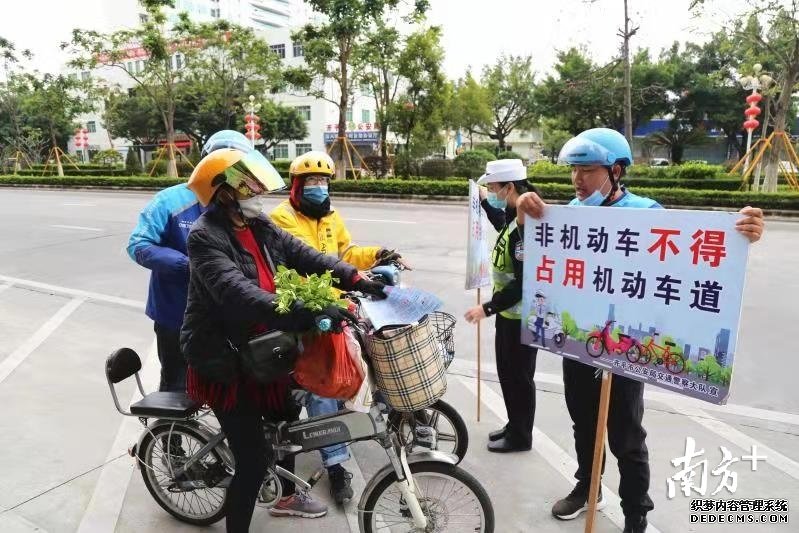 活动中,宣传民警向企业负责人和骑手宣读了《江门市公安局关于开展电动自行车注册登记的通告》,向外卖骑手讲解目前开展电动车专项整治的内容和电动自行车登记上牌相关政策。同时,结合大润发站点的道路交通实际,对外卖骑手进行安全培训,并佩戴安全头盔和遵守交通法律法规的重要性。