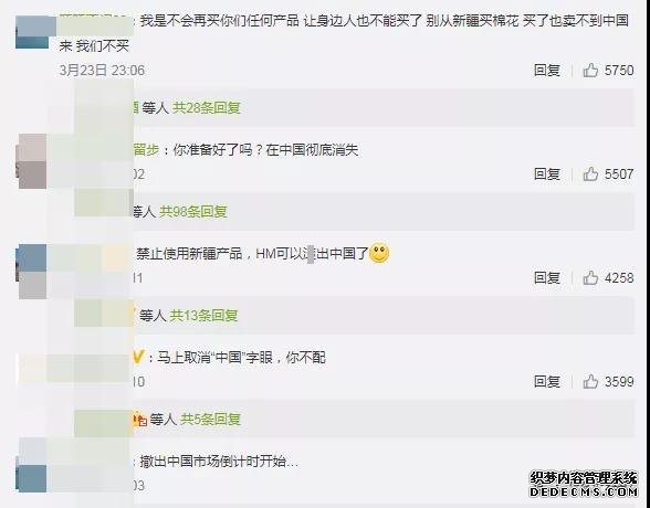 在@HM中国 最近发布的三条微博下,大批网友留言表示:退出中国。目前相关留言仍在不断增长,记者粗略计算了下,20分钟内增加了近千条。