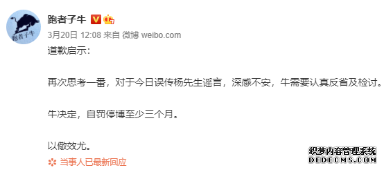 “确认了,杨振宁先生确实已经离世。”近日,拥有百万粉丝的微博博主“跑者子牛”发布了这一爆炸性消息。清华大学随即辟谣,称“杨先生当前身体健康”。目前该“大V”已就此事道歉,称“自罚停博至少三个月”。