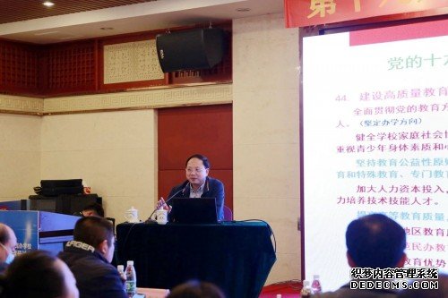 上海市教育科学研究院民办教育研究所所长、研究员、院学术委员会委员,中国民办教育协会民办教育研究院常务副院长,中国民办教育协会研究分会常务副理事长董圣足作了题为《“十四五”期间民办教育宏观政策分析》的报告,结合国家十四五规划和2035远景发展纲要,从民办教育发展的新态势、民办教育改革的新动向、民办学校面临的新挑战、民办学校突围的新思路四个方面进行了深入阐述,解剖了系列新法、新政对民办教育的影响,为民办教育的发展提振了信心、指明了方向。