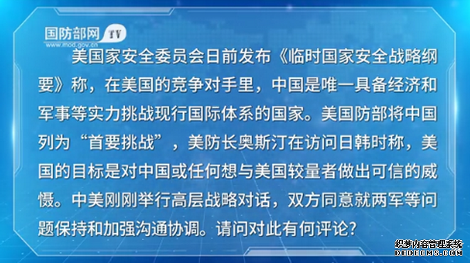 美方将中国列为首要挑战 国防部回应:中国军队维护主权安全能力始终都在~