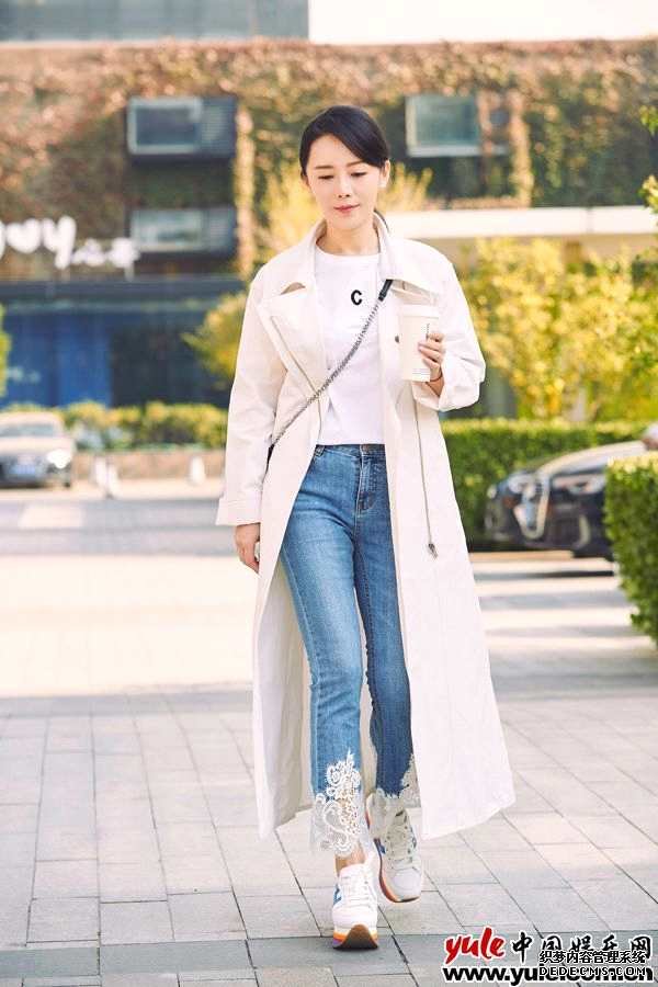 车永莉3 蕾丝边的牛仔裤使简单的白色衣服看起来更时尚,亮色斜挎包包是点睛之笔,羽毛的装饰下,简约时尚又不失一丝的活力,手拿咖啡OL风十足。时尚感满屏的搭配,快来享受这治愈的春日气息吧。