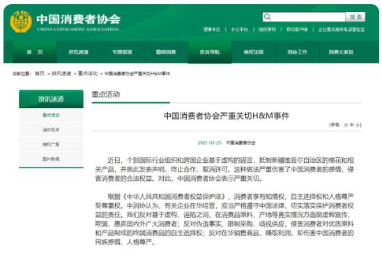 【热点追踪】中消协回应H&M事件:侵害消费者权益