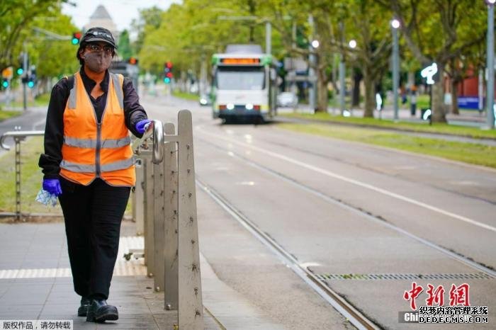 当地时间2月13日,澳大利亚墨尔本,一名环卫工人正在清洁车站。