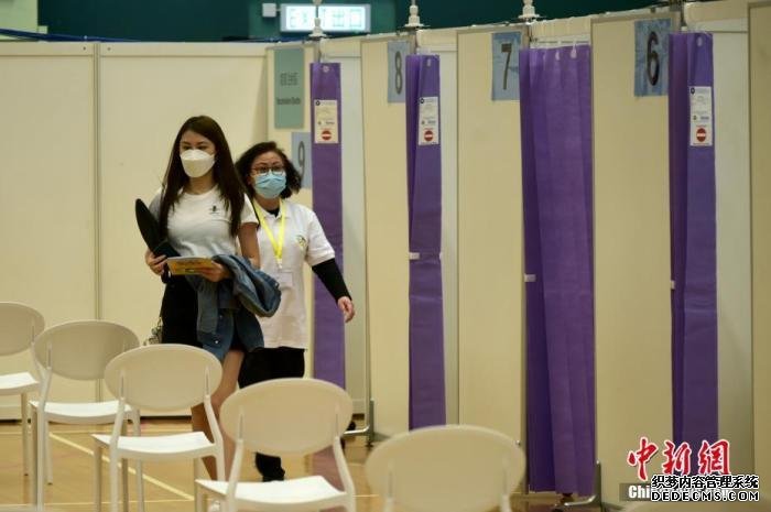 资料图:3月16日,香港多个社区疫苗接种中心14天内的预约爆满。特区政府扩大新冠疫苗接种优先组别范围,现时涵盖人口逾550万,占16岁或以上人口逾八成,优先接种组别人士可预约或到私家医生诊所接种疫苗。图为市民于社区疫苗接种中心接种疫苗。中新社记者李志华摄