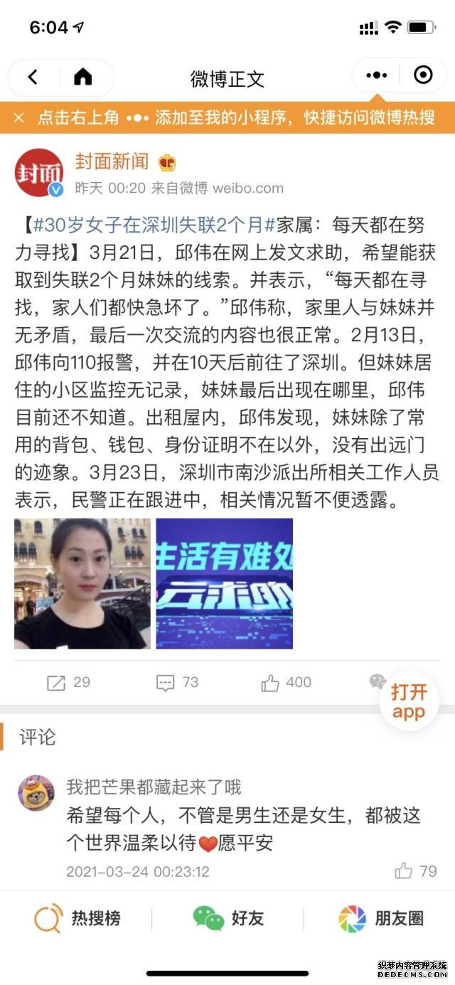 240772932021-03-26 08:05:09:98130岁女子在深圳失联2个月,宝安警方:人已安全找回妹妹,邱伟,深圳,寻找,目前318235深圳要闻深圳要闻